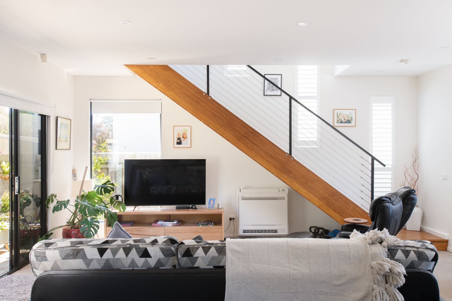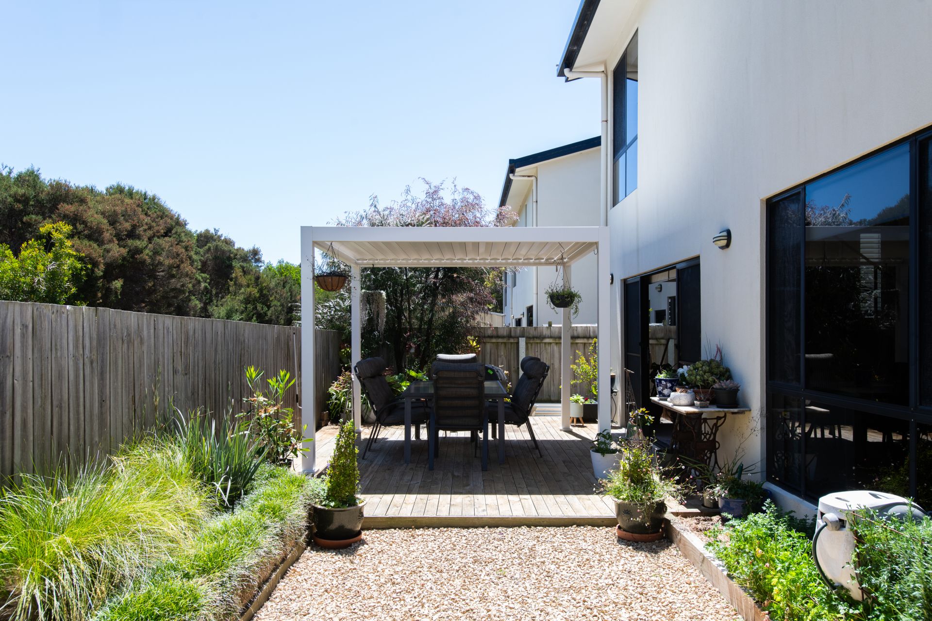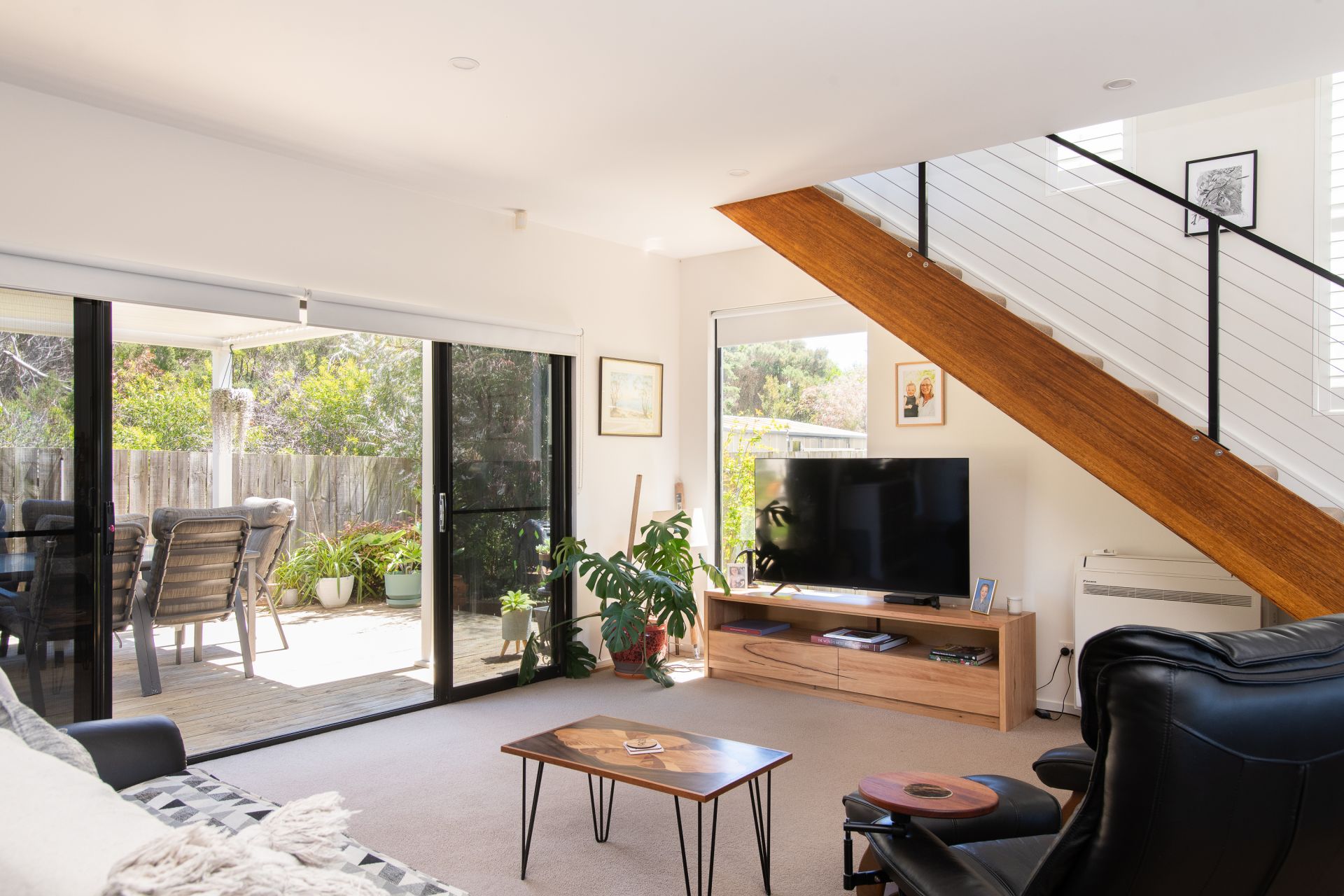 The open-plan living area flows seamlessly onto two entertaining decks, ideal for hosting or enjoying the outdoors. Upstairs, a cosy sitting area provides the perfect space to unwind, work, or study. The property also boasts low-maintenance gardens, complete with a newly added gazebo for serene relaxation.