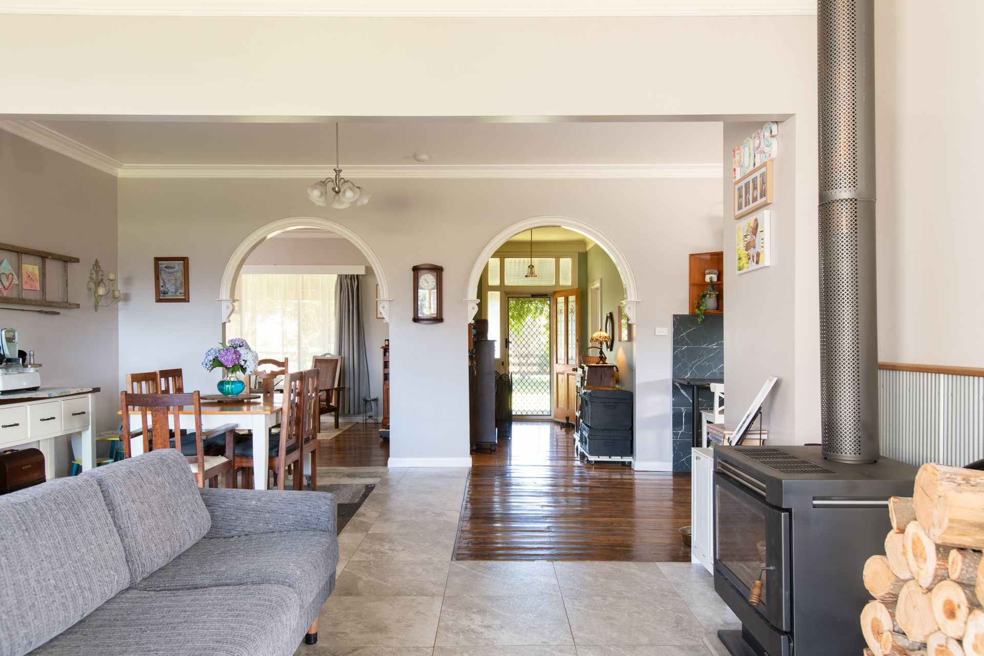 The heart of the home is the open-plan living area, seamlessly connecting the kitchen, dining, and family room - ideal for entertaining or unwinding by the wood heater. A separate formal lounge provides additional space to relax.