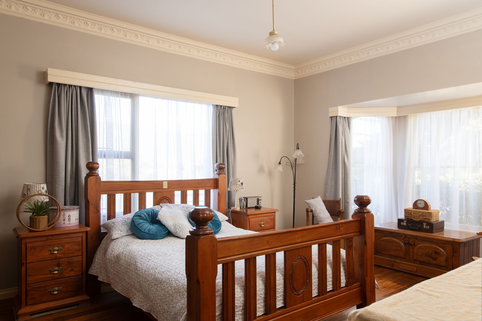 This spacious five-bedroom, two-bathroom home is designed for relaxed family living. The primary room includes a walk-in robe and private ensuite. High ceilings and generously sized rooms create a bright and airy atmosphere, complemented by polished timber floors, decorative ceiling roses, and timeless architectural details.