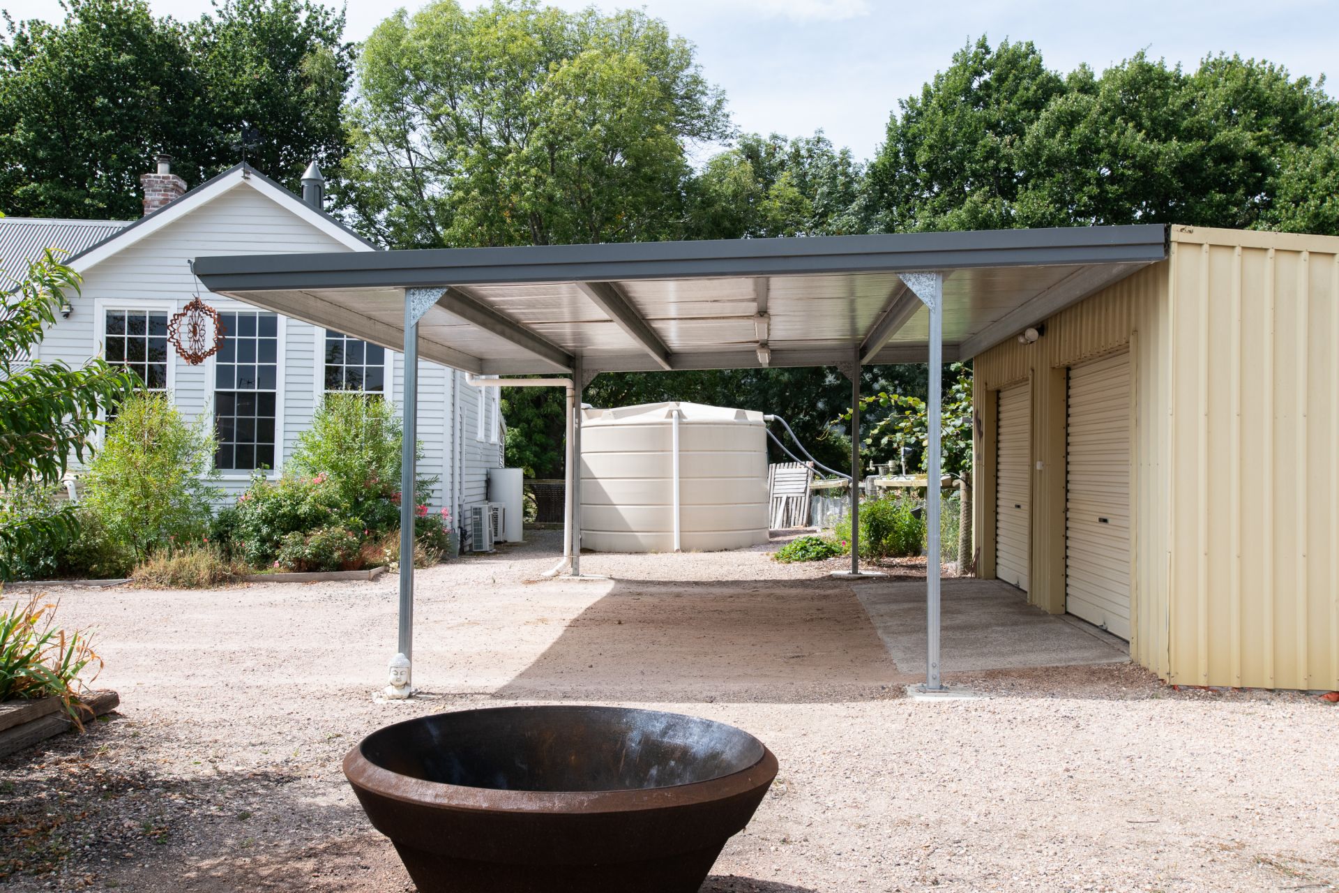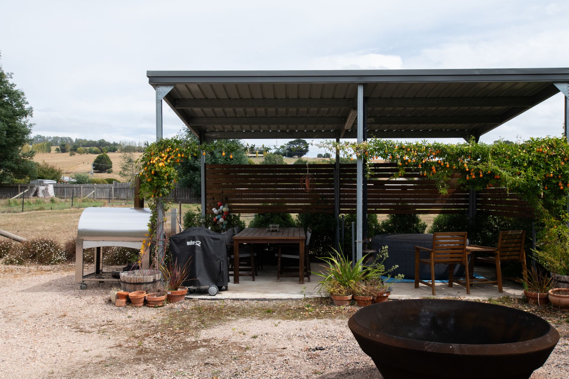 Outdoor living is just as impressive, with a covered entertaining area featuring a fire pit and pizza oven, all with power and lighting. The established gardens are fully irrigated and serviced by a bore with a 26,000L concrete holding tank, along with an extensive water storage and transfer system. The orchard, raised vegetable gardens, and greenhouse (all irrigated) offer a sustainable lifestyle.