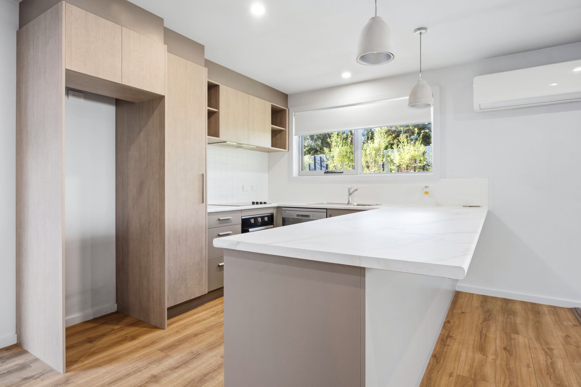 The kitchen is equipped with quality appliances, ideal for everyday cooking and entertaining alike. A single lock-up garage with a remote-controlled roller door adds both security and practicality.