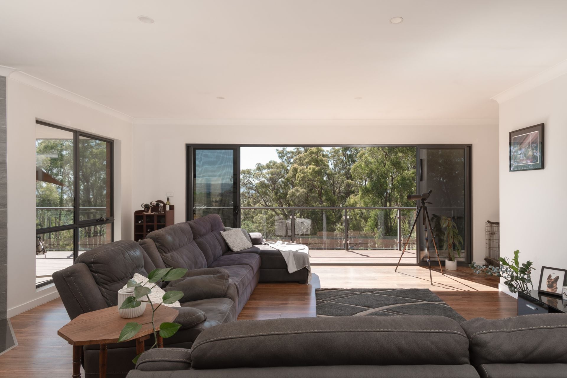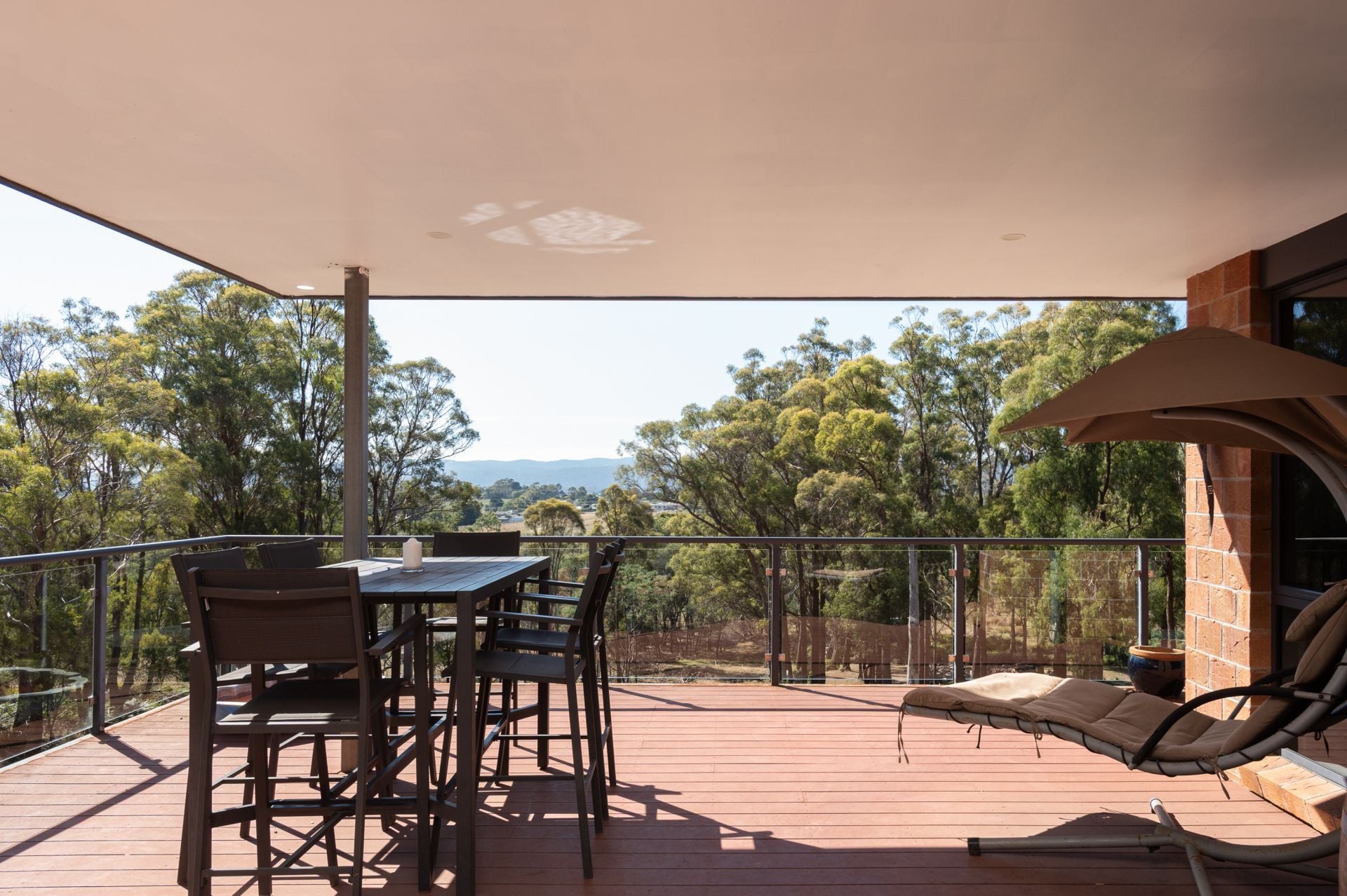 Designed to take advantage of its elevated setting, the home captures a sweeping outlook across the Tamar River/Kanamaluka. A wraparound deck extends from the main living zone, creating a natural connection between indoor and outdoor living.