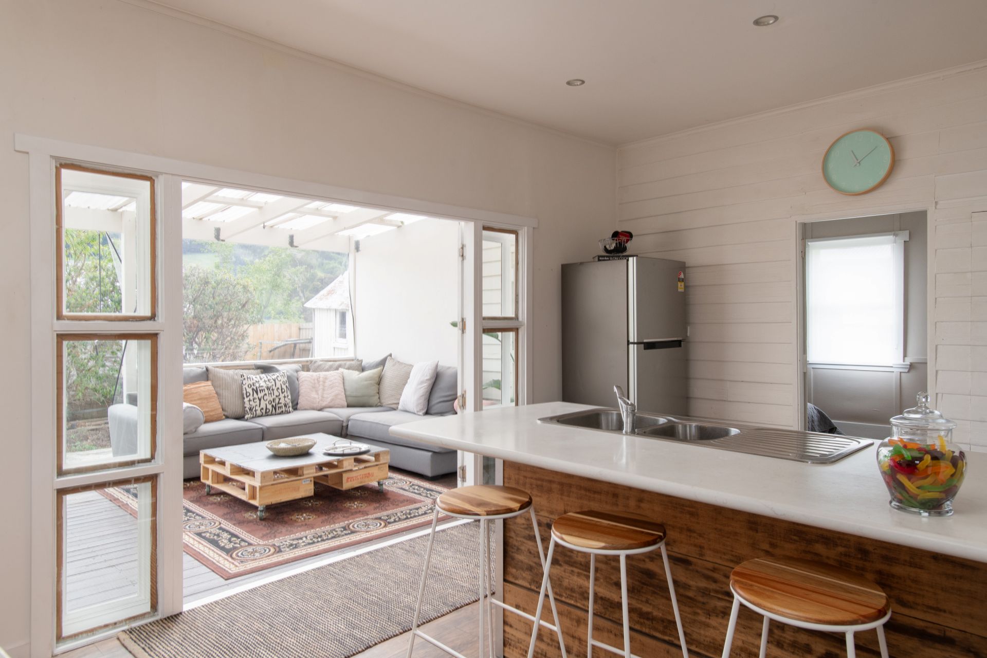 Enveloped by well-established gardens, mature rose bushes, and fruit-bearing trees, the property imparts a deep sense of tranquility. From the southern windows you can still savour captivating views of the nearby mountains above Shibui and of Mount Arthur beyond.