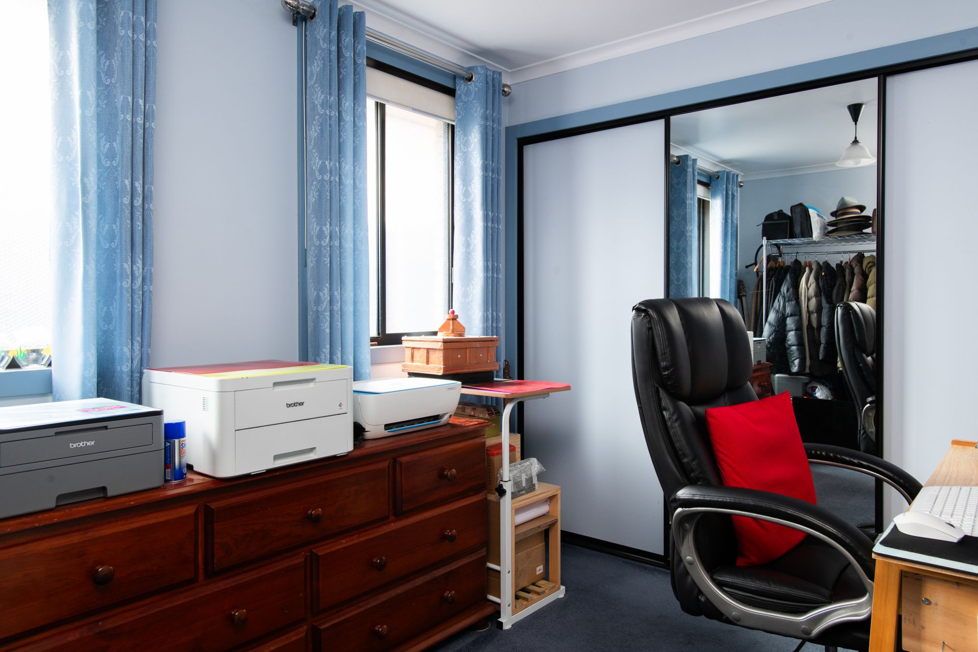 The open-plan living area feels inviting and warm, creating a space you'll love coming home to. Both bedrooms include built-in wardrobes, while the hallway also offers generous additional storage with a large built-in cupboard.