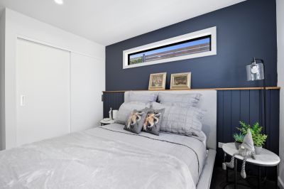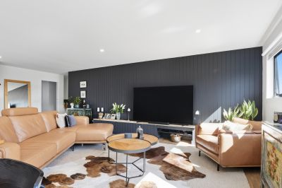 The core of the home is a spacious, light-filled open plan living area that flows effortlessly through triple sliding glass doors to a stunning covered outdoor entertaining space. This living area is enhanced by a stylish kitchen equipped with engineered stone benchtops, a large pantry, soft-close cabinetry, a sizable bin drawer, a dishwasher, and excellent storage options. Electric blinds throughout the open plan living area provide both convenience and a touch of luxury. Additionally, the property boasts established native gardens and an irrigated front lawn, ensuring lush greenery year-round.