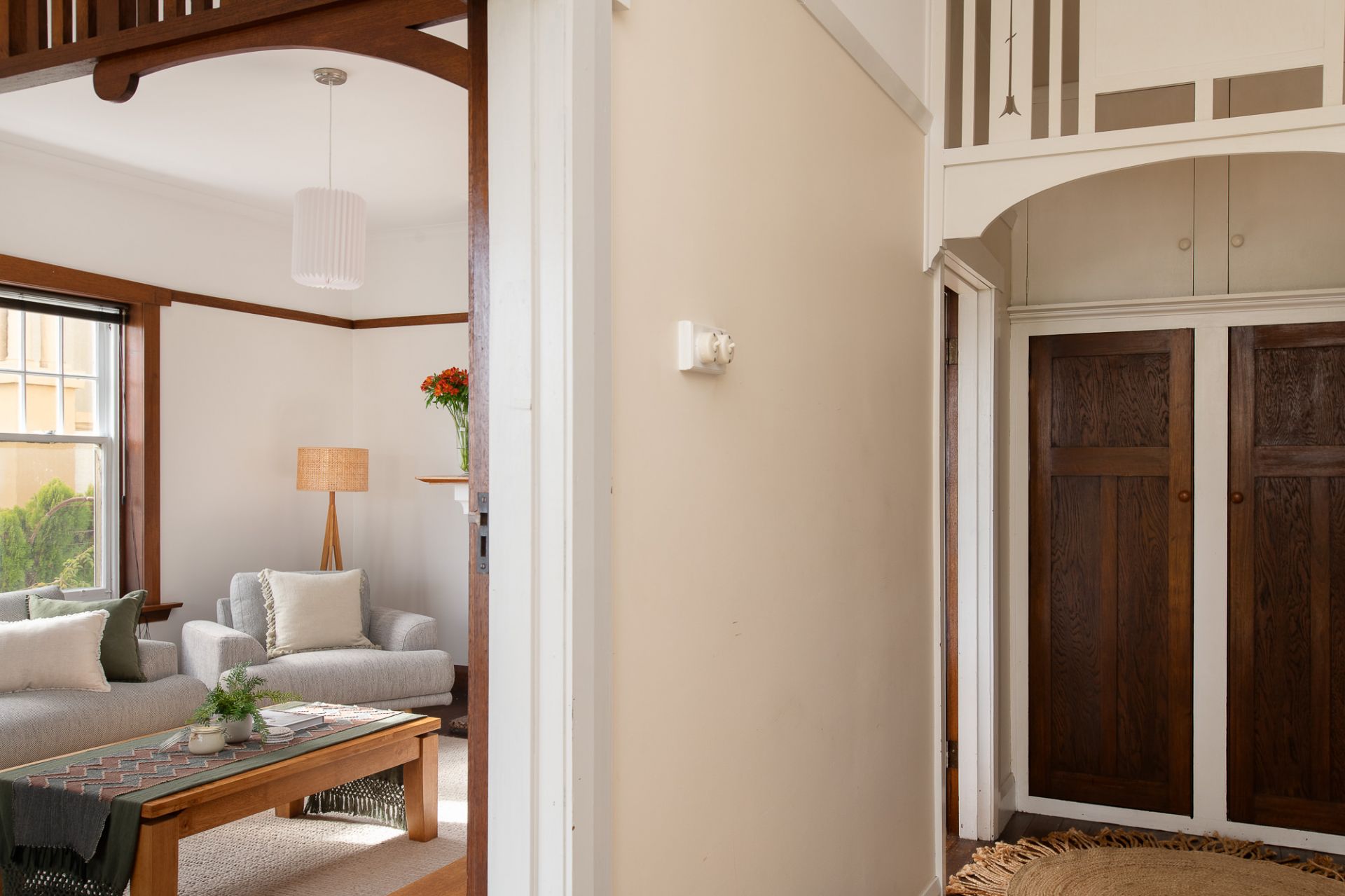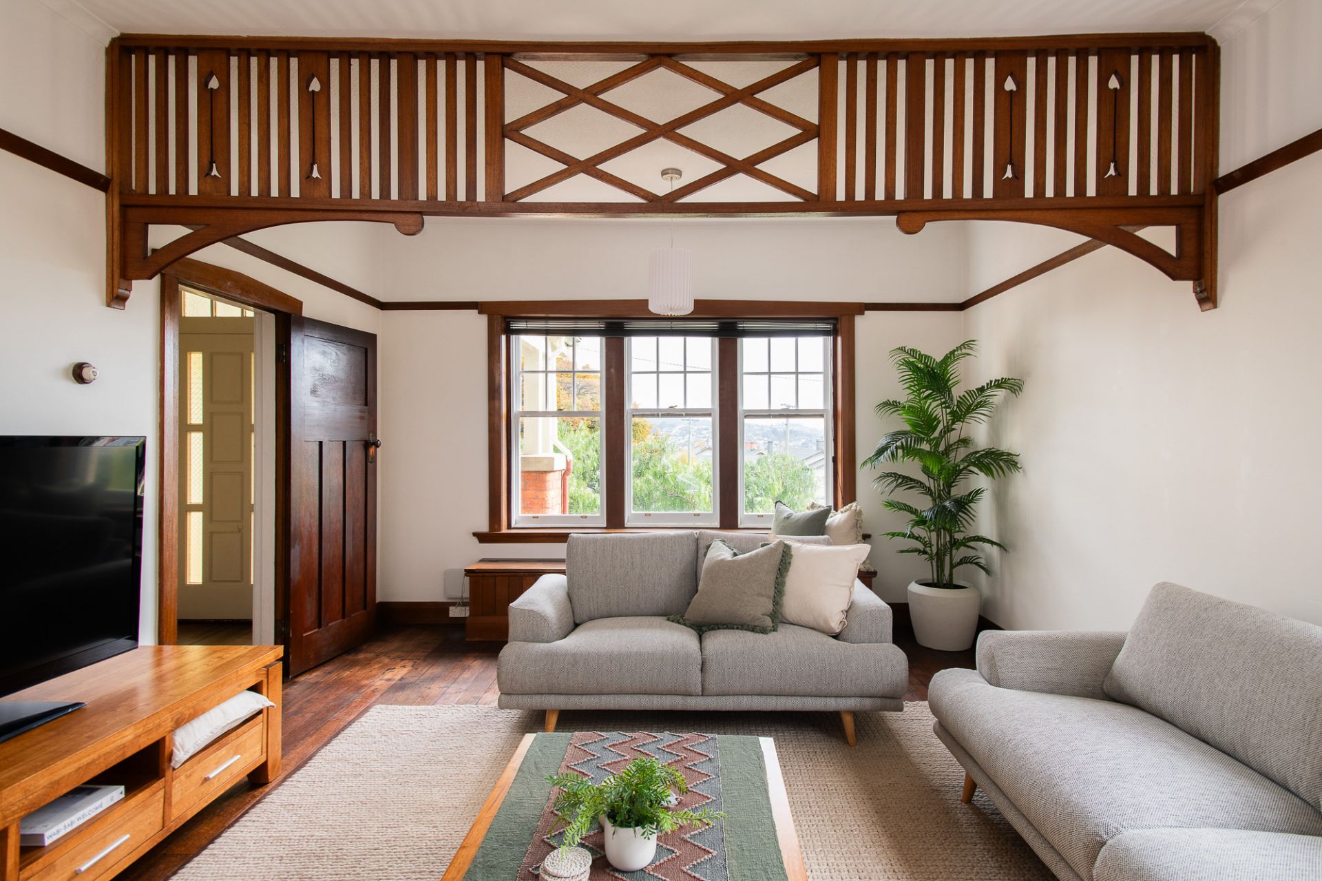 The interiors offer beautifully preserved original timber work, picture rails and ornate fretwork. The lounge is generous in size and bathed in natural light, with a wood fire and leafy outlook, the built-in window seat provides the perfect spot to enjoy a morning coffee with a view over the city skyline.