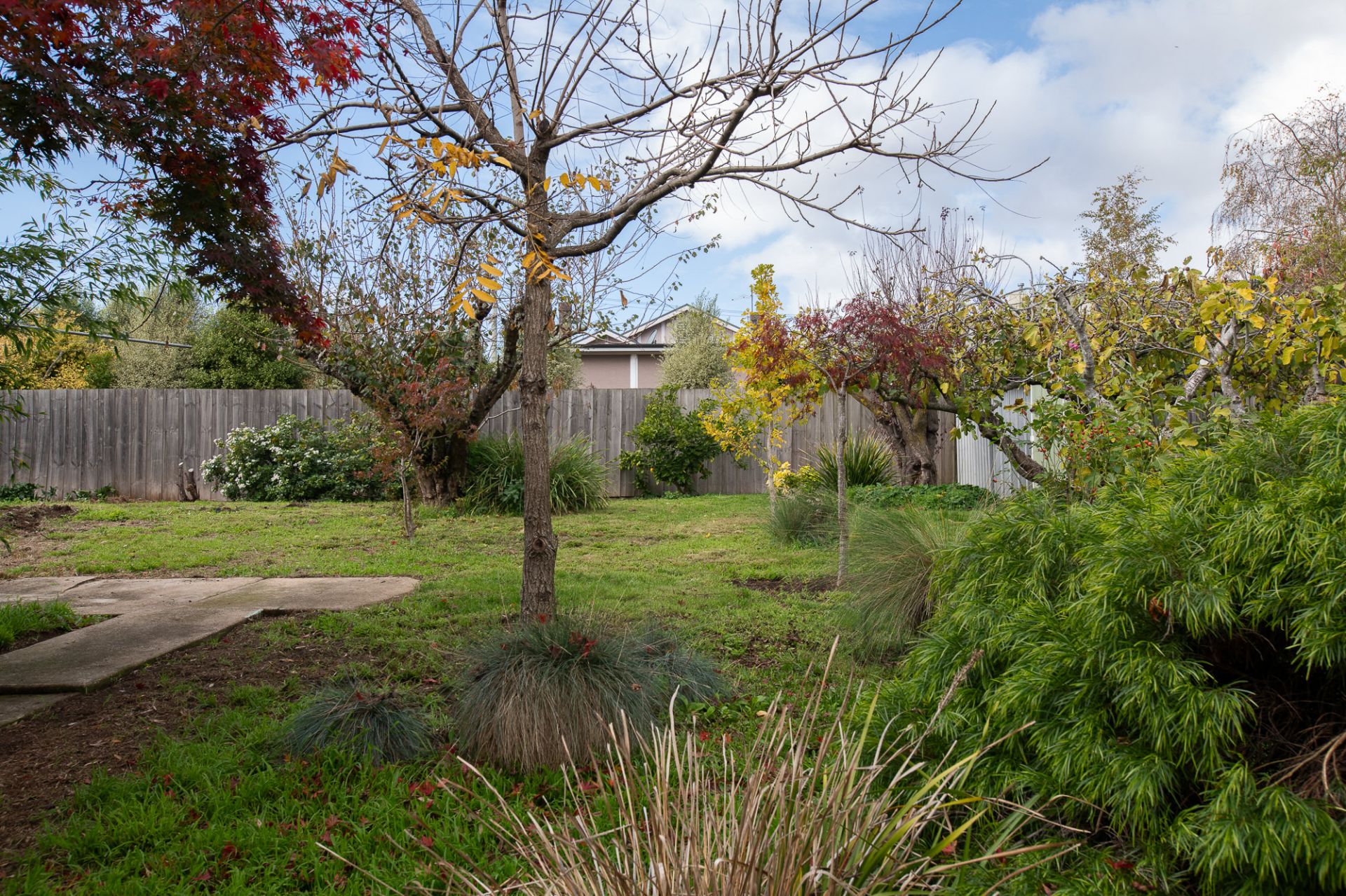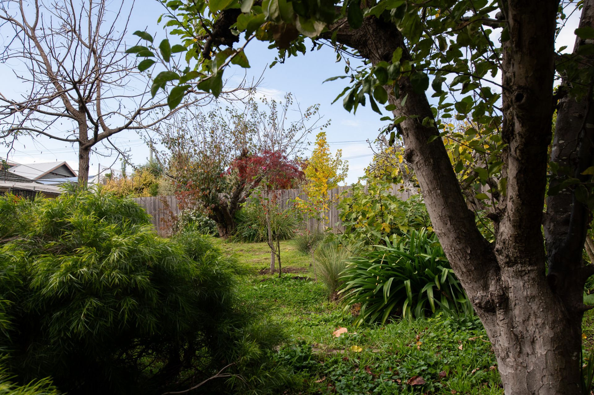 The year yard is adorned with established fruit trees, natives and flowering plants, creating a peaceful space for all to enjoy and private, leafy vistas from almost every window.